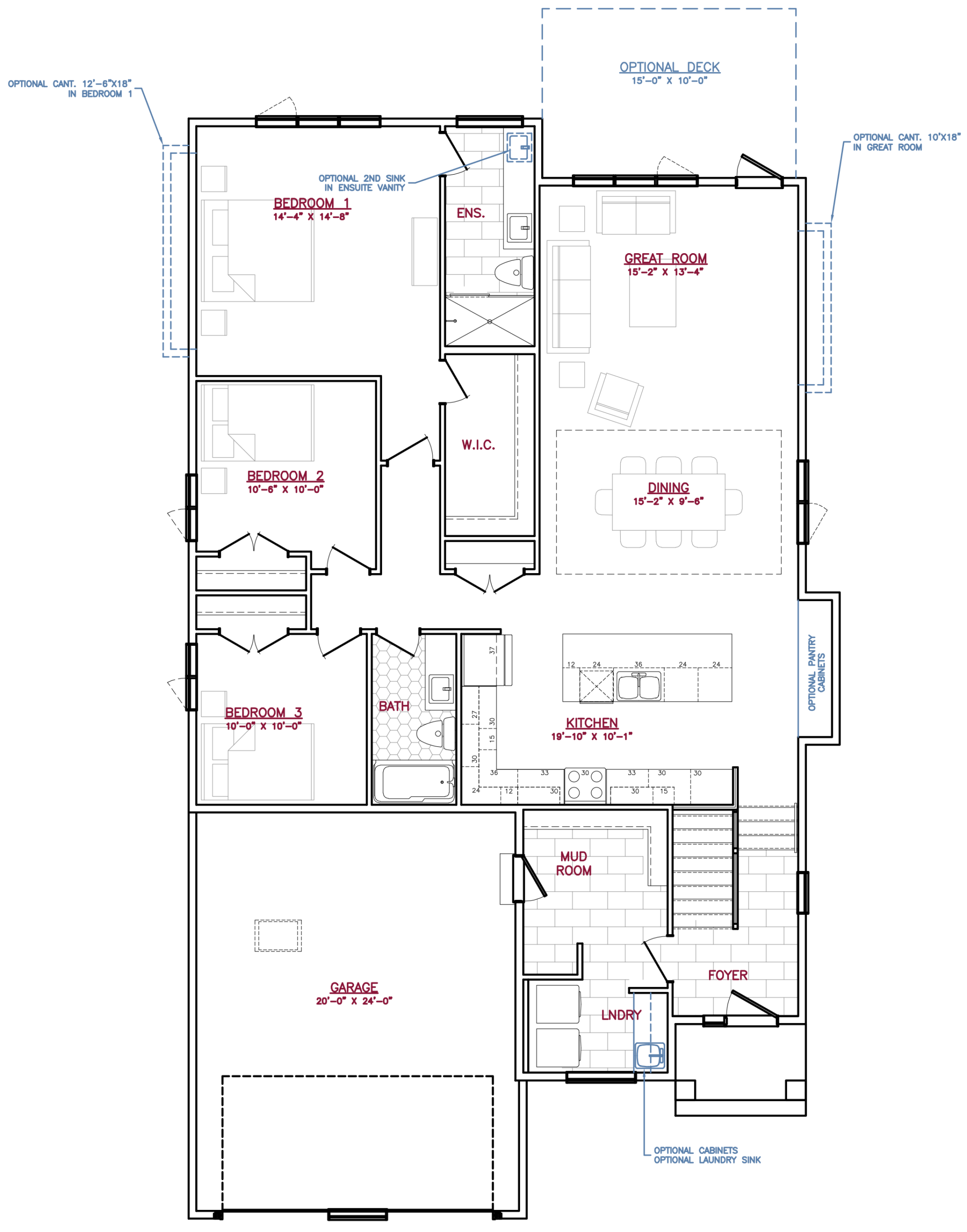 These elevations are subject to change and these images do not form part of a contract. All illustrations are artist’s conception and may vary. Room dimensions are approximate. Windows and room sizes may vary with elevations. Mechanical equipment location and placement subject to change as required by building code and at discretion of builder. Furniture outlines for purpose of visualizing room layout only, furniture not included. Foxridge Homes reserves the right to change material or specifications without notice.