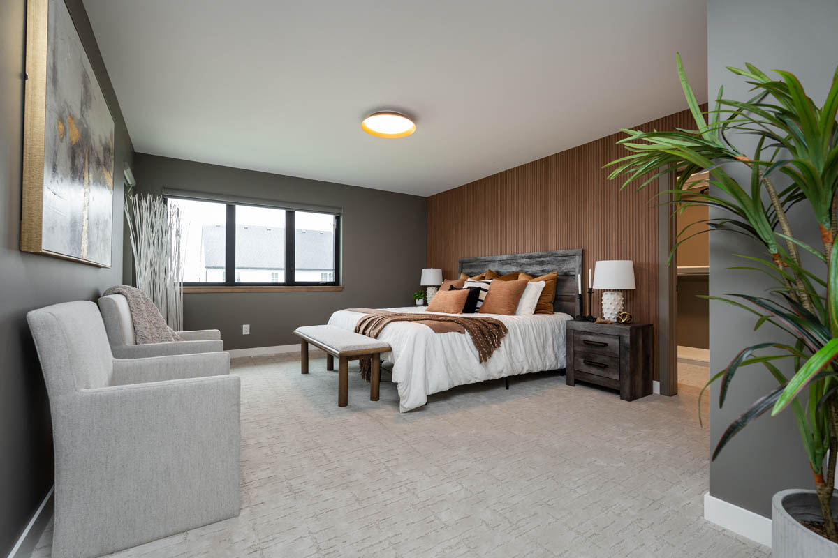 - Primary bedroom includes massive custom walk-in closet and custom feature wall with wood slats
