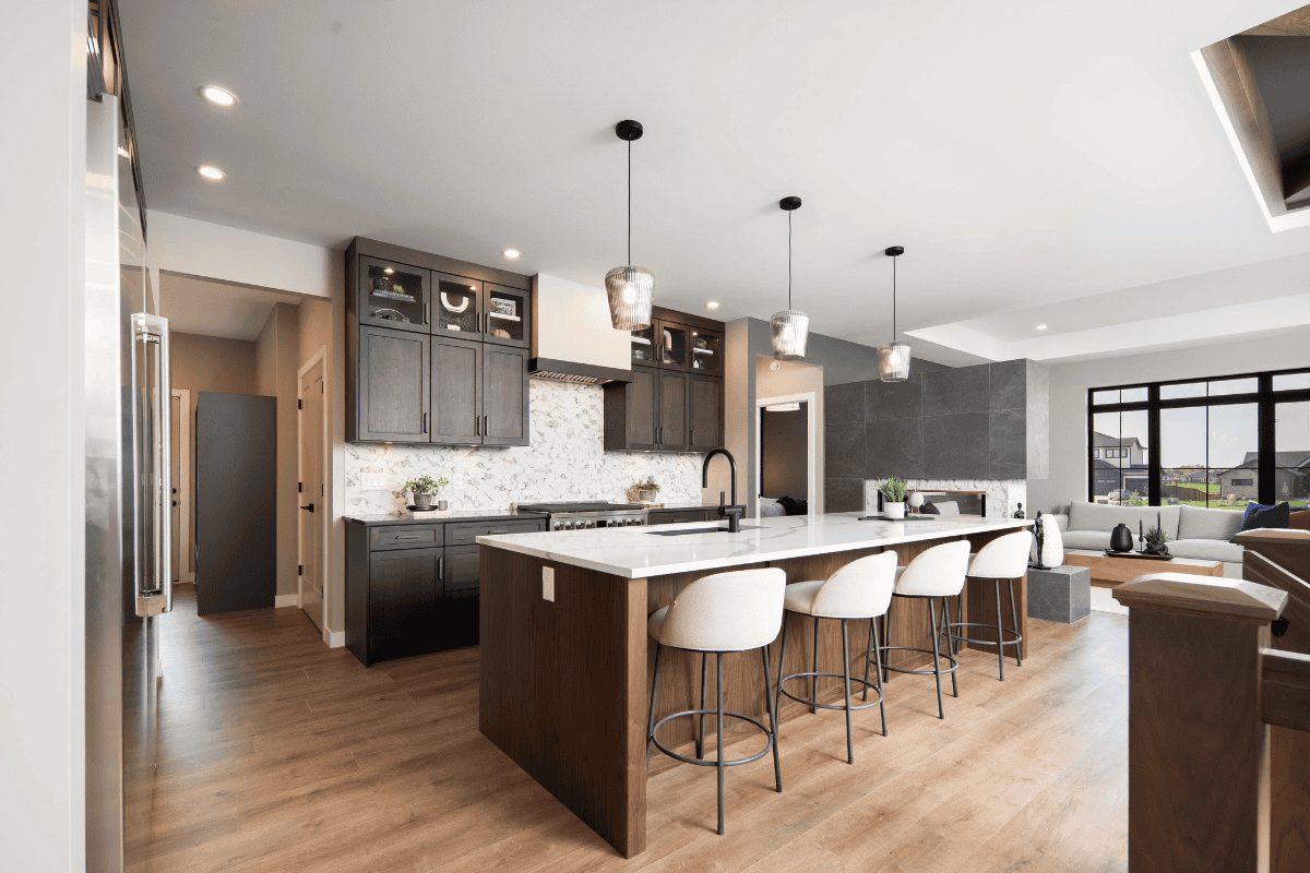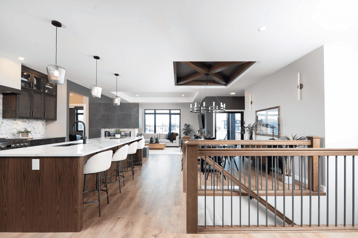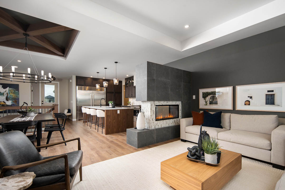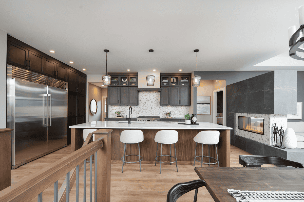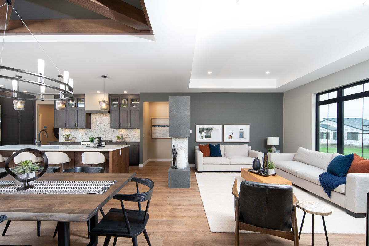 - 11′ kitchen island, 9′ ceilings throughout, and 10′ ceilings in great room and dining room